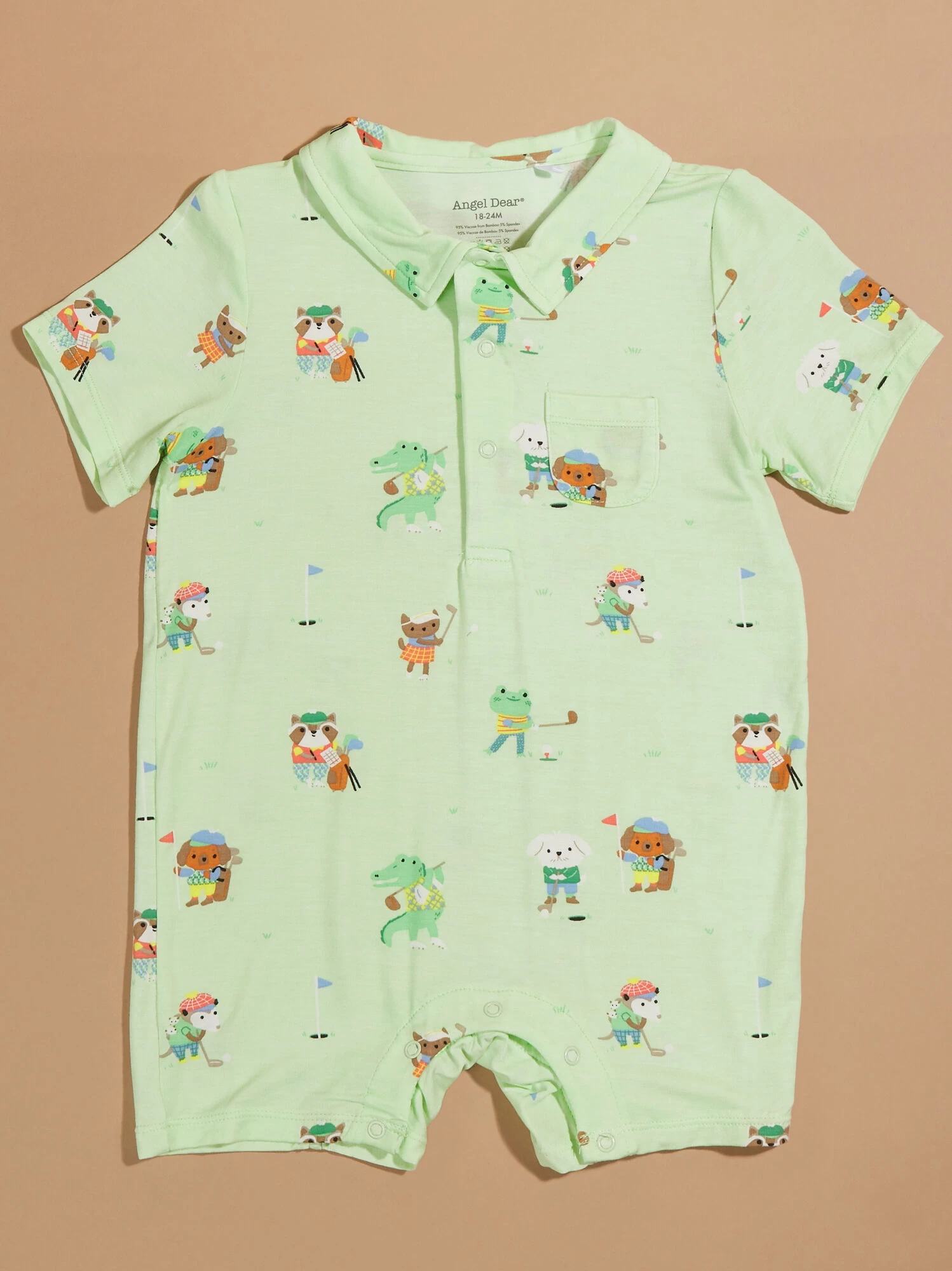 This golf animal inspired jumpsuit will wrap your little boy in in cool lightweight comfort, crafted from eco-friendly bamboo material. This polo has a convenient front pocket and preppy collared neckline to make this one-piece the cutest look for outings or lounging at home.