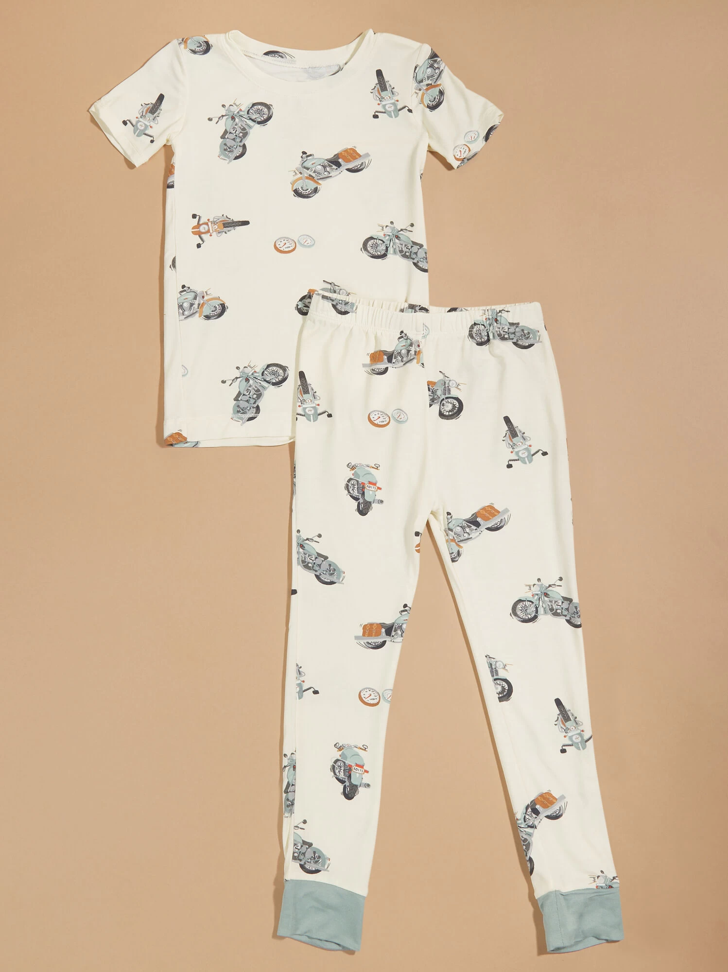 From play to naptime, this matching motorcycle print set is an everyday must for your boy, offering buttery smooth comfort and a soft stretch for easy movement. The eco-friendly bamboo material provides a lightweight and ultra breathable feel to keep your little cool all day long.